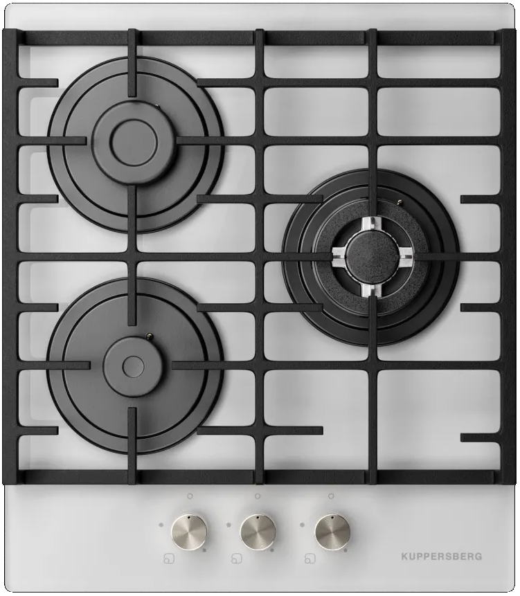 поверхность газовая, 45 см, газ на стекле, 3 конфорки, решетки чугунные, белый