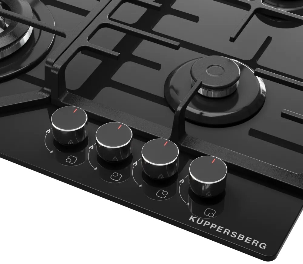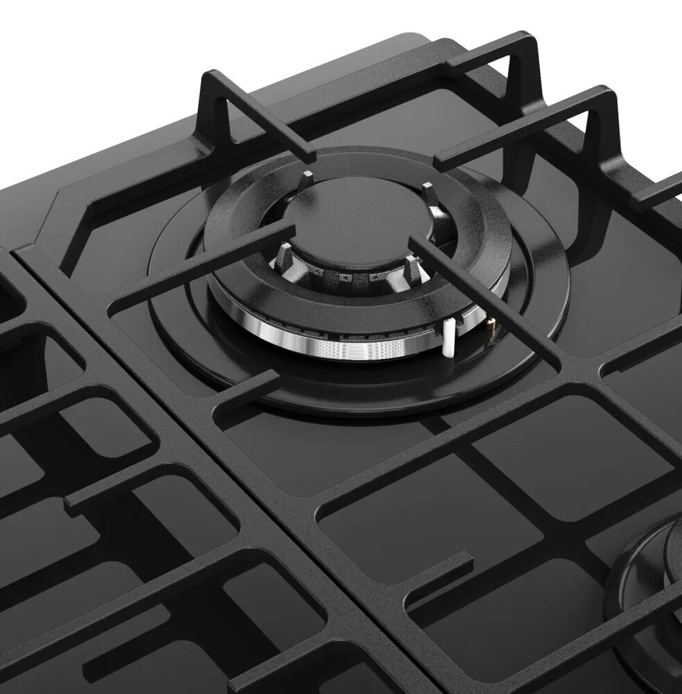 поверхность газовая, 60 см, газ на стекле, 4 конфорки, решетки чугунные, черный