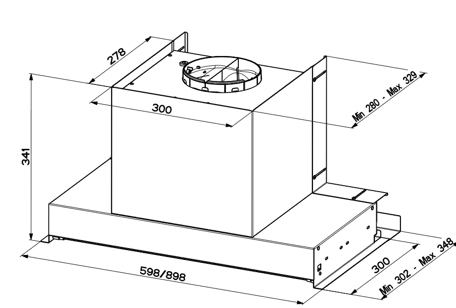 вытяжка встраиваемая в подвесной шкаф, 60 см, 850 м3/час, нержавеющая сталь