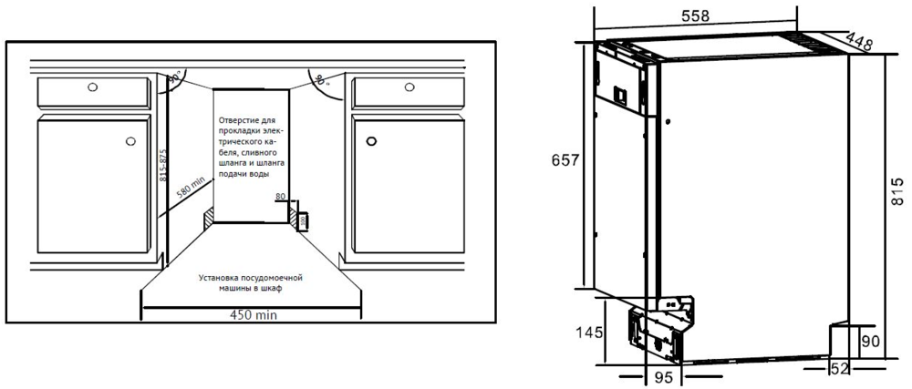 машина посудомоечная встраиваемая, 45 см, 9 комплектов