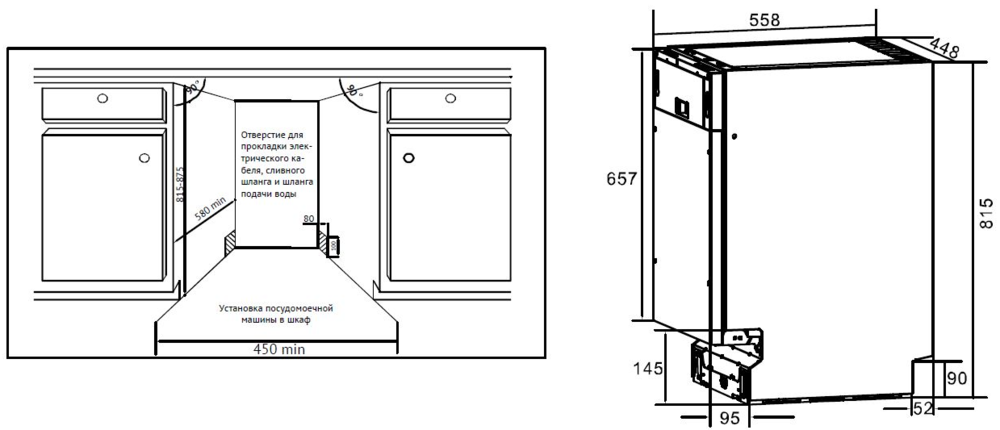 машина посудомоечная встраиваемая, 45 см, 11 комплектов