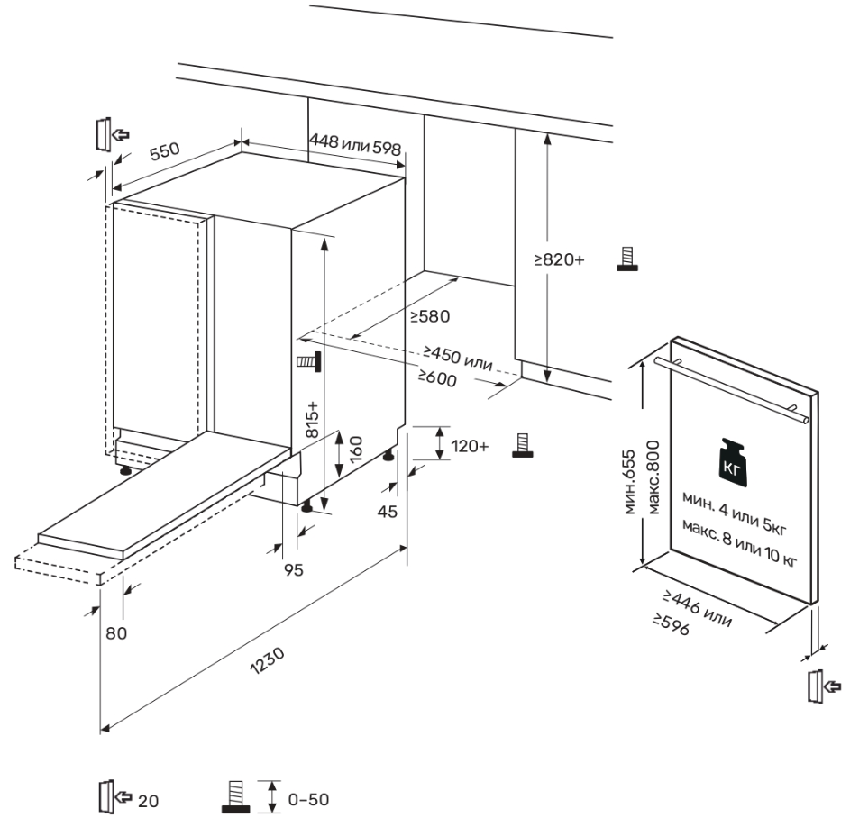 Ширина корпуса электроприбора. Особенно важно точно знать точную допустимую ширину для встраиваемой техники.