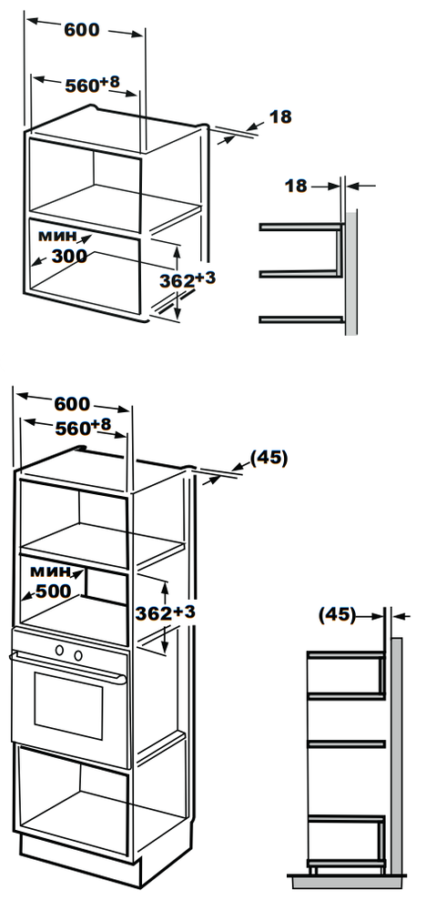Ширина корпуса электроприбора. Особенно важно точно знать точную допустимую ширину для встраиваемой техники.