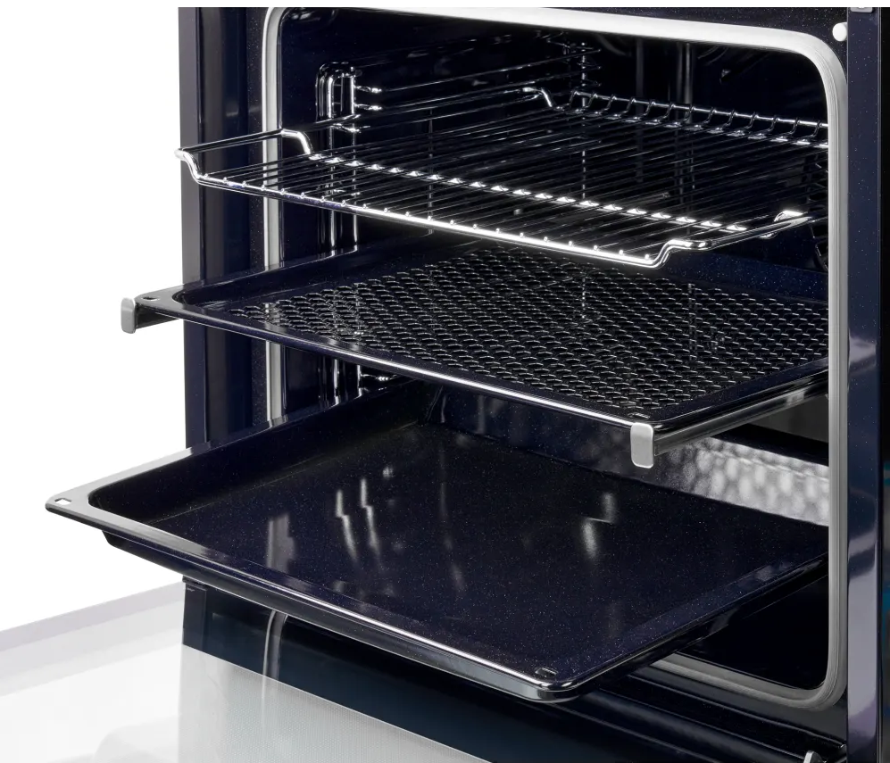 Выдвижные металлические полозья, которые легко выезжают за пределы камеры духовки вместе с противнем, не давая ему упасть.