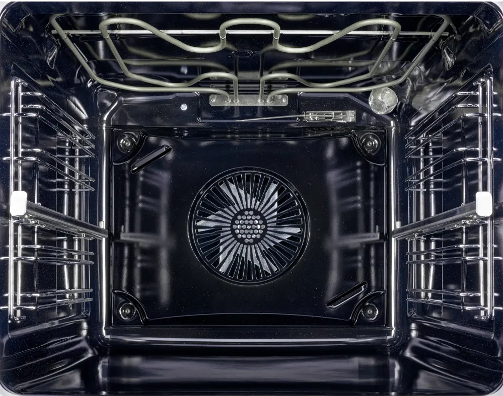 Предполагает наличие встроенного вентилятора, который обеспечивает равномерное запекание благодаря непрерывной циркуляции горячего воздуха.
