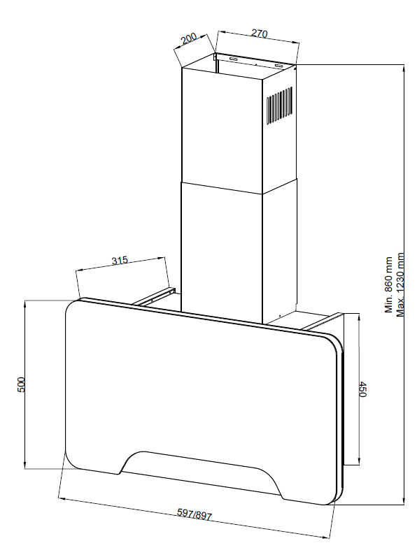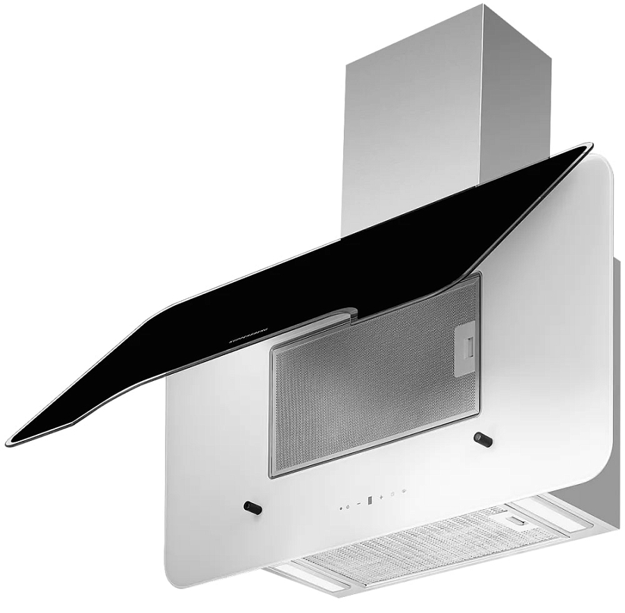 вытяжка наклонная, 90 см, 850 м3/ч, черный с белыми элементами