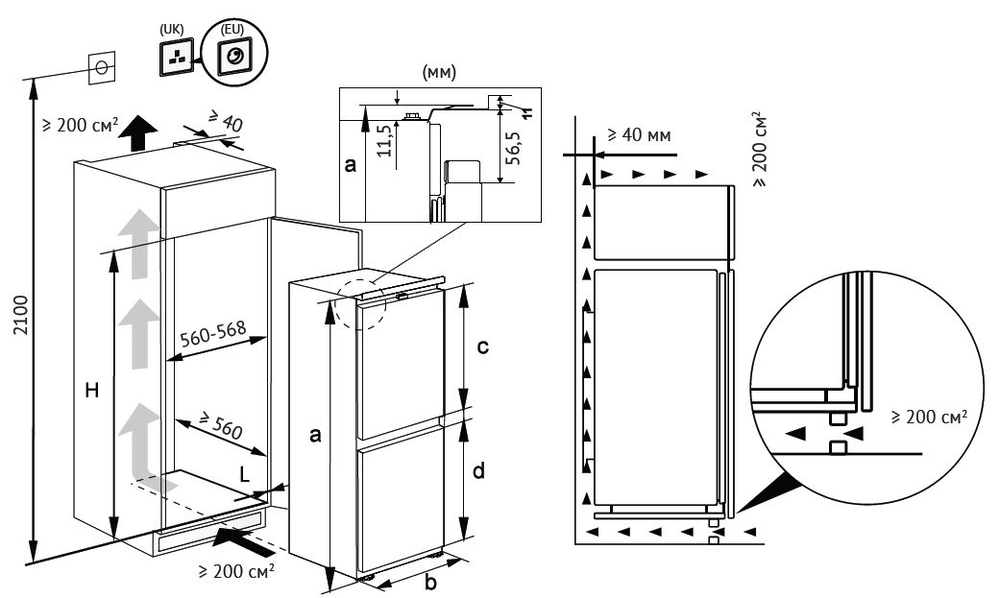 Ширина корпуса электроприбора. Особенно важно точно знать точную допустимую ширину для встраиваемой техники.