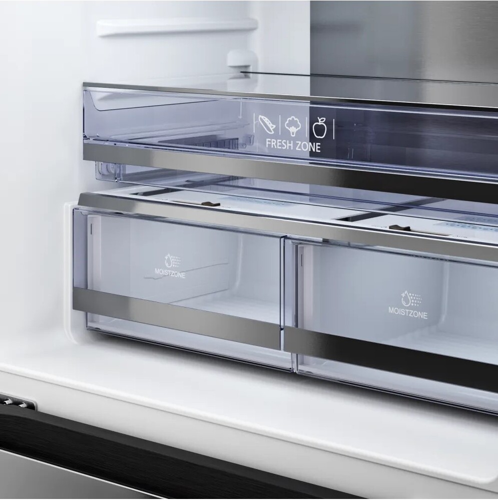 В зоне свежести температура держится на уровне 0°С, так продукты дольше остаются свежими. Подходит для свежего мяса, рыбы, фруктов, овощей.