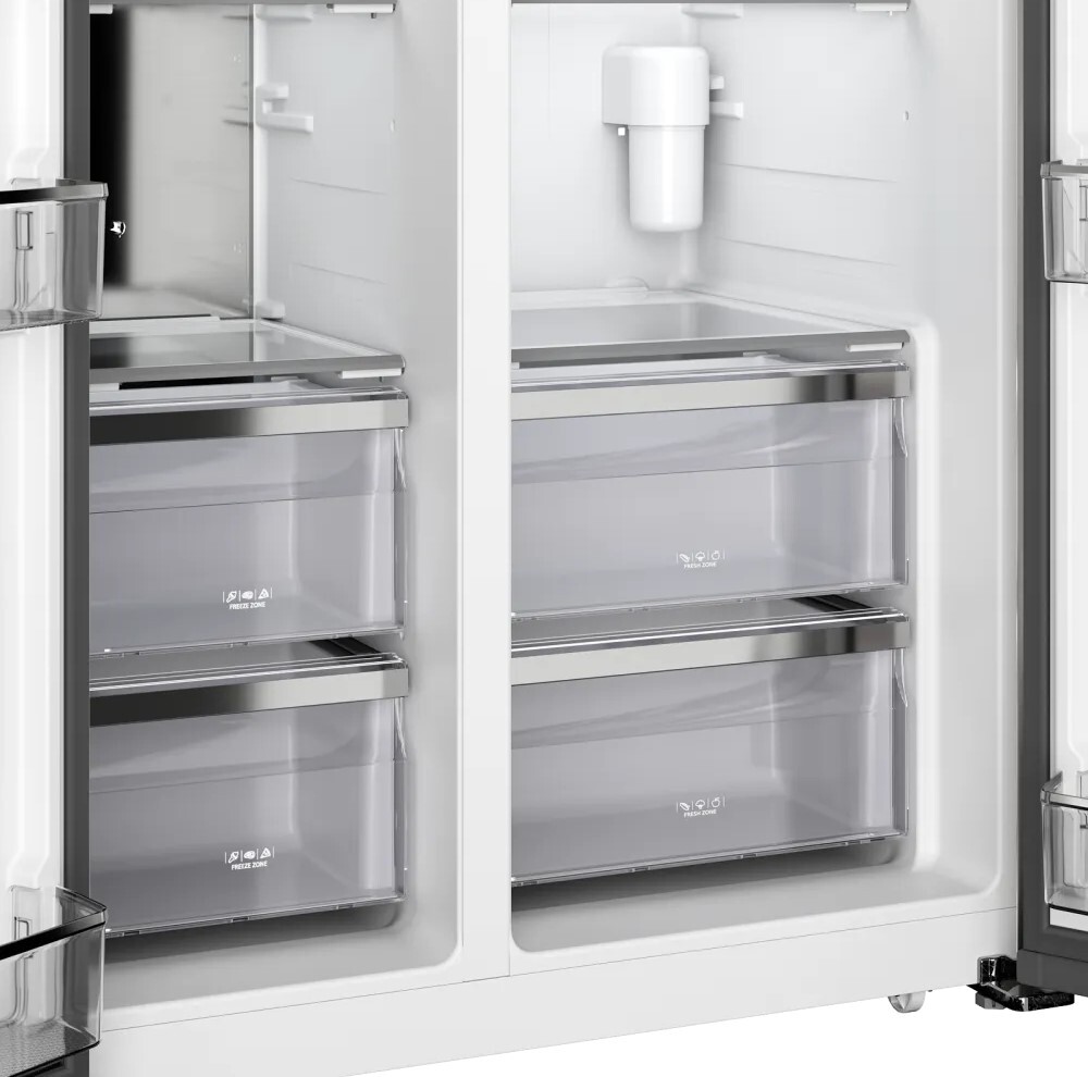 В зоне свежести температура держится на уровне 0°С, так продукты дольше остаются свежими. Подходит для свежего мяса, рыбы, фруктов, овощей.