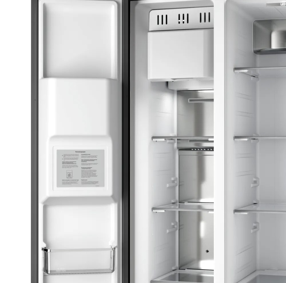 холодильник-морозильник Side-by-Side отдельностоящий, 541 л, класс энергопотребления А+, No Frost, 91,1х70,6х178 см, нержавеющая сталь