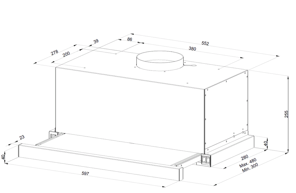 вытяжка встраиваемая телескопическая, 60 см, 1000 м3/ч, нержавеющая сталь