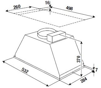 вытяжка встраиваемая в подвесной шкаф, 53 см, 598 м3/ч, нержавеющая сталь