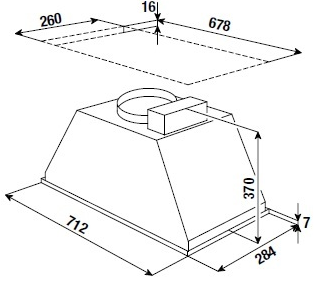 вытяжка встраиваемая в подвесной шкаф, 71 см, 816 м3/ч, нержавеющая сталь