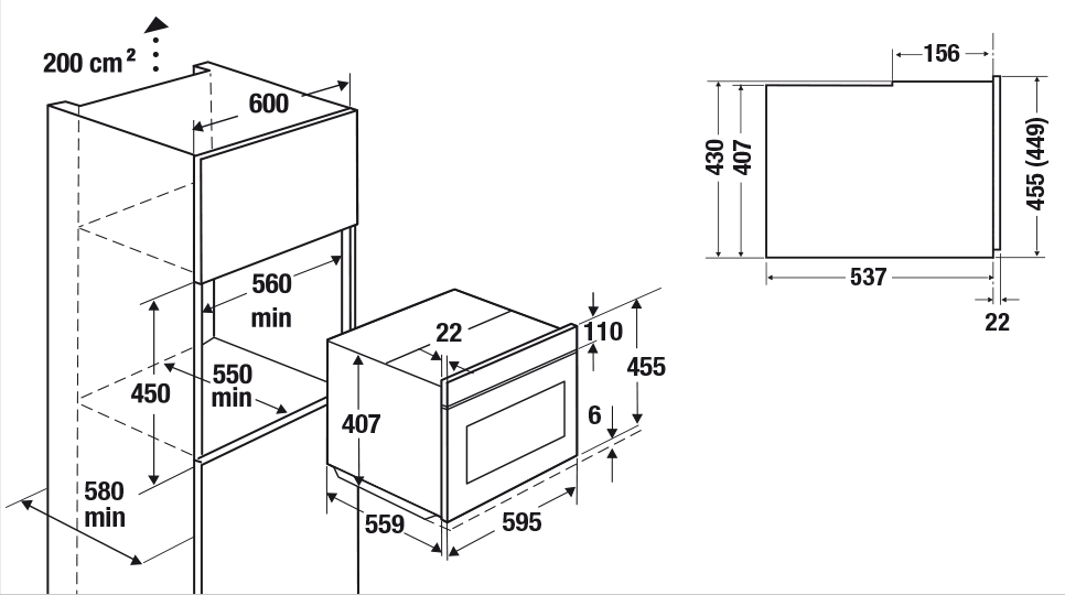 Ширина корпуса электроприбора. Особенно важно точно знать точную допустимую ширину для встраиваемой техники.