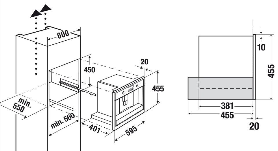 кофемашина встраиваемая, 59,5x47,5х45,5 см, белое стекло, рамка- черный хром