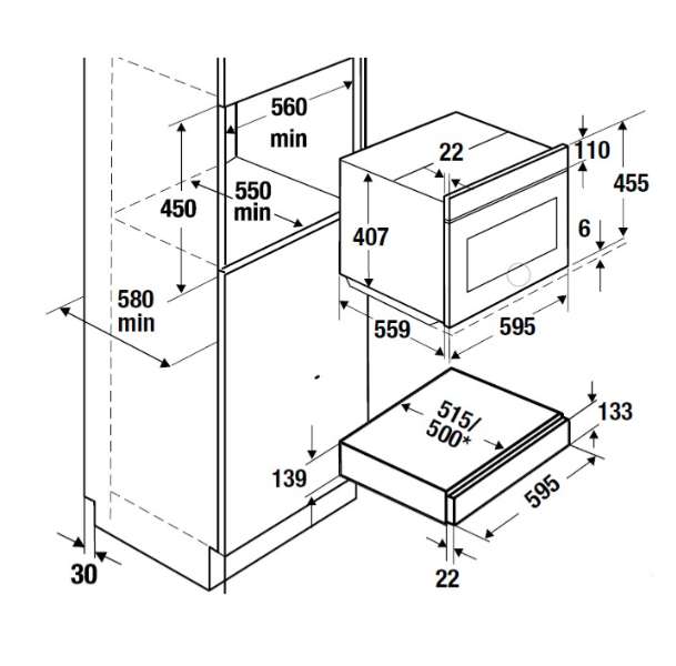 ящик для подогрева посуды встраиваемый, 59,5х51,5х13,9 см, белое стекло, рамка золото