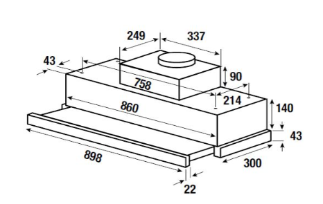 вытяжка встраиваемая телескопическая, 90 см, 706 м3/ч, нержавеющая сталь