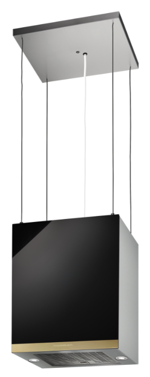 вытяжка островная, 35 см, 770 м3/ч, черное стекло, планка золото