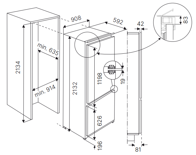 холодильник-морозильник встраиваемый, 556 л, класс энергопотребления Е, No Frost, 90,8х59,2х213,2 см
