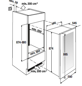 винный шкаф встраиваемый, 56 бутылок, 59,4х55,5х88,7 см, ручка хром