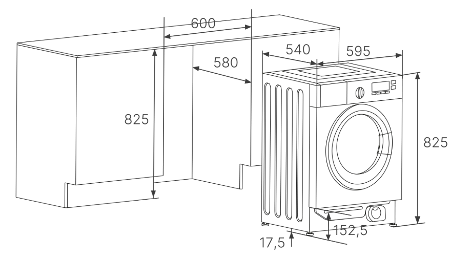 машина стиральная встраиваемая, 1400 об/мин, 8 кг, 59,5х54х82,5 см, белый