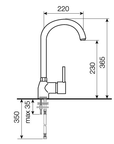 смеситель для кухни, латунь, высокий поворотный излив, черный