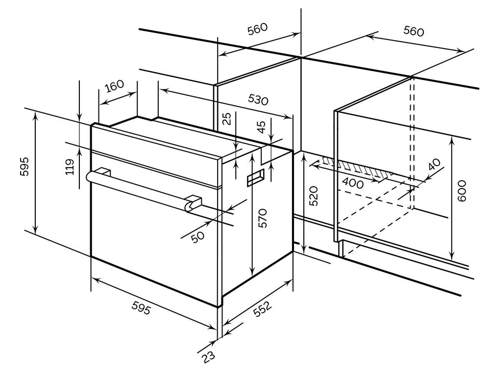 Ширина корпуса электроприбора. Особенно важно точно знать точную допустимую ширину для встраиваемой техники.
