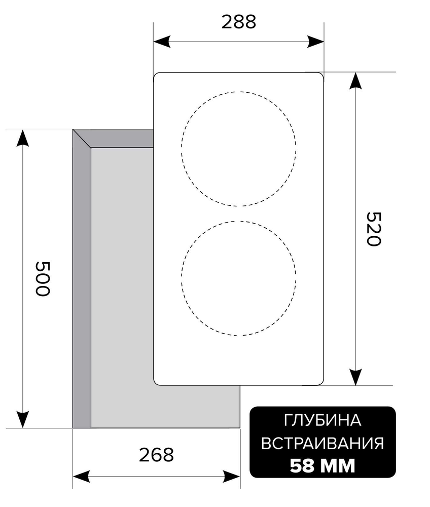 поверхность варочная стеклокерамическая индукционная, 30 см, черный