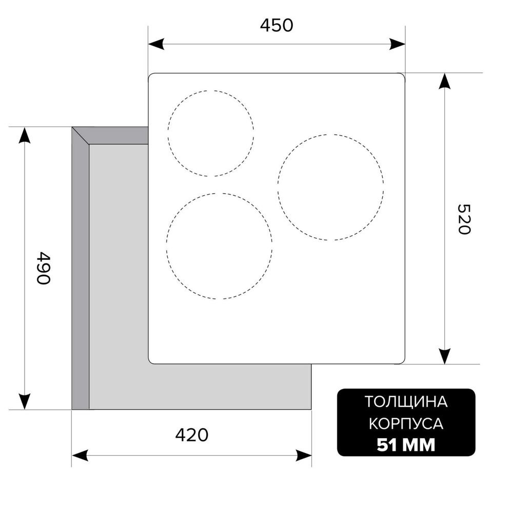 поверхность варочная стеклокерамическая индукционная, 45 см, черный