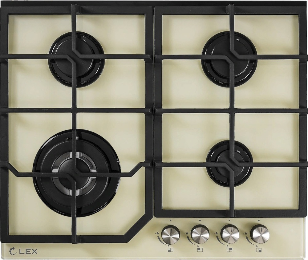 поверхность газовая, 60 см, газ на стекле,4 конфорки, решетки чугунные, слоновая кость