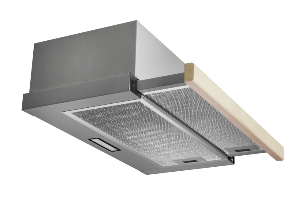 вытяжка встраиваемая телескопическая, 60 см, 820 м3/ч, нержавеющая сталь+нетонированное дерево