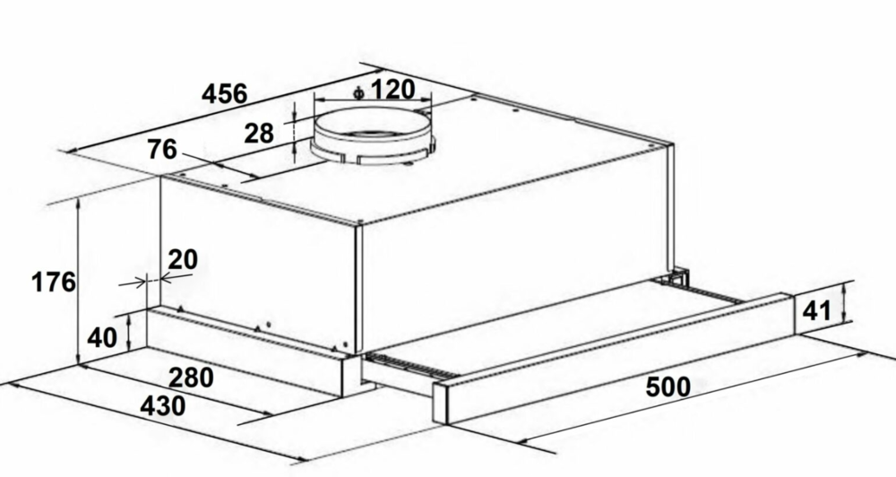 вытяжка встраиваемая телескопическая, 50 см, 650 м3/ч, нержавеющая сталь