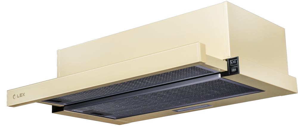 вытяжка встраиваемая телескопическая, 60 см, 1000 м³/ч. слоновая кость стекло