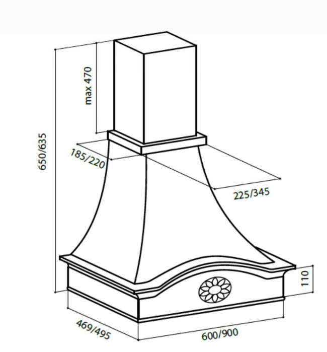вытяжка классическая, 60 см, 650 м3/ч, белый