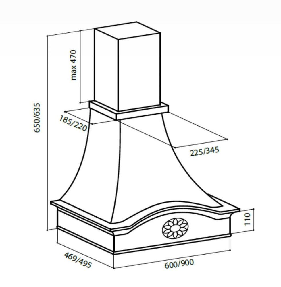 вытяжка классическая, 90 см, 650 м3/ч, слоновая кость