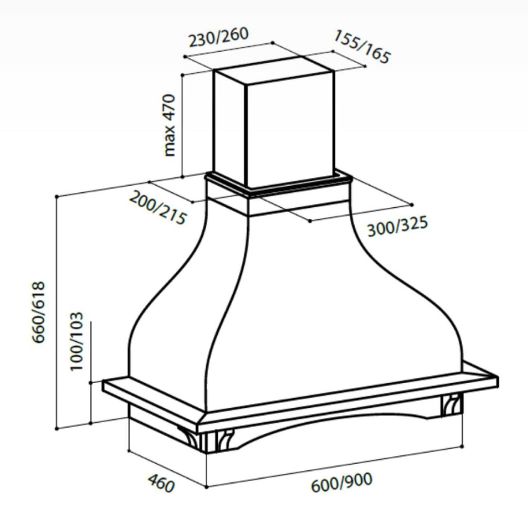вытяжка классическая, 60 см, 650 м3/ч, слоновая кость