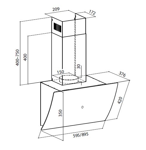 вытяжка наклонная, 90 см, 1050 м3/ч, белое стекло