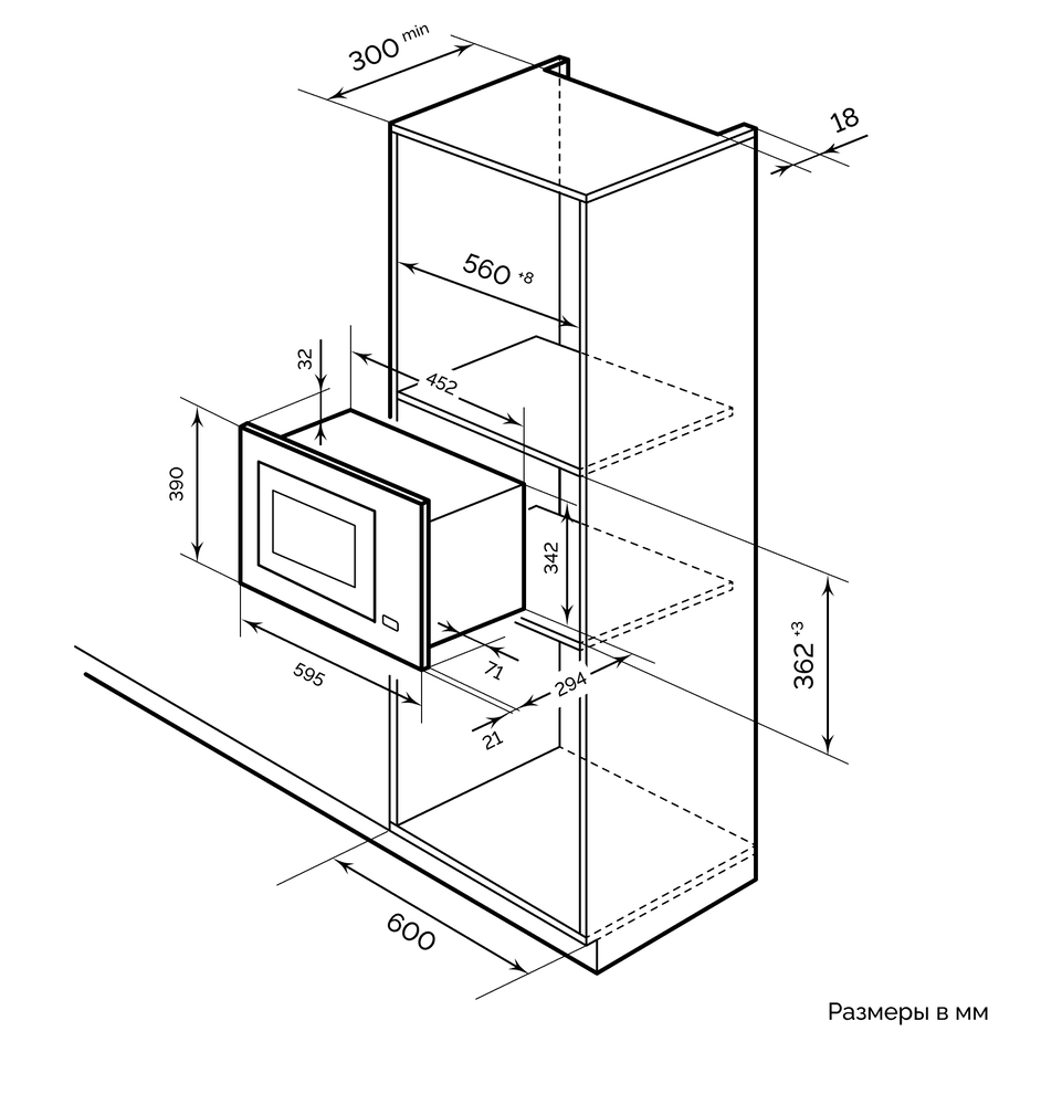 Ширина корпуса электроприбора. Особенно важно точно знать точную допустимую ширину для встраиваемой техники.