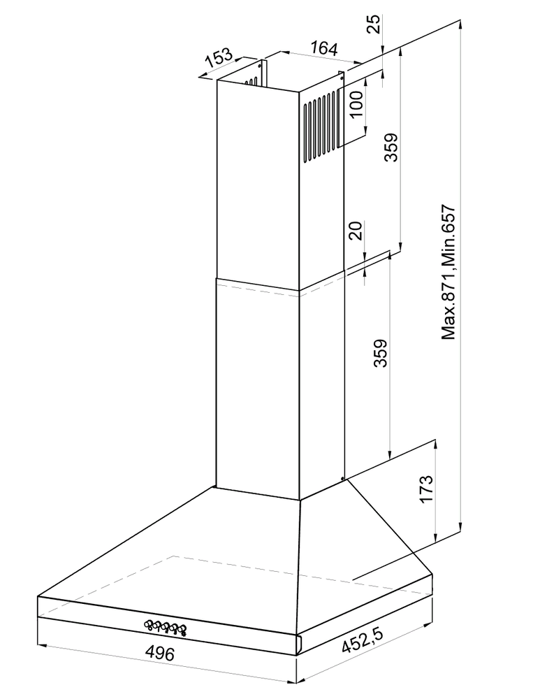 вытяжка пристенная, 50 см, 700 м3/ч, белый