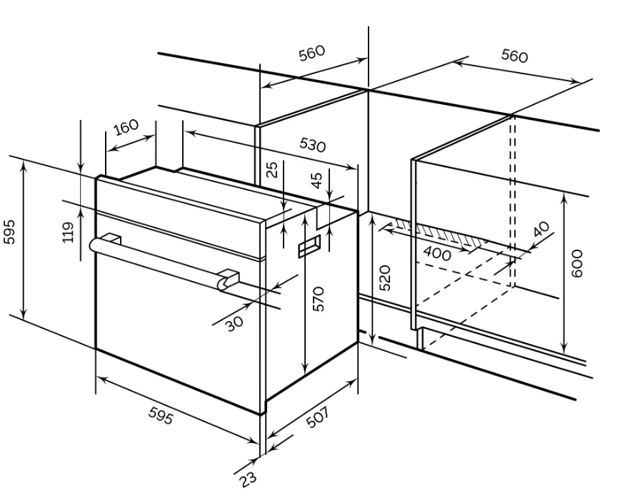 Ширина корпуса электроприбора. Особенно важно точно знать точную допустимую ширину для встраиваемой техники.