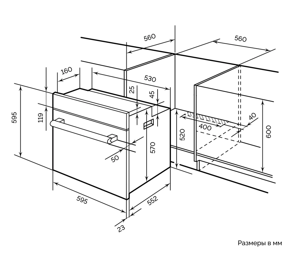 Ширина корпуса электроприбора. Особенно важно точно знать точную допустимую ширину для встраиваемой техники.