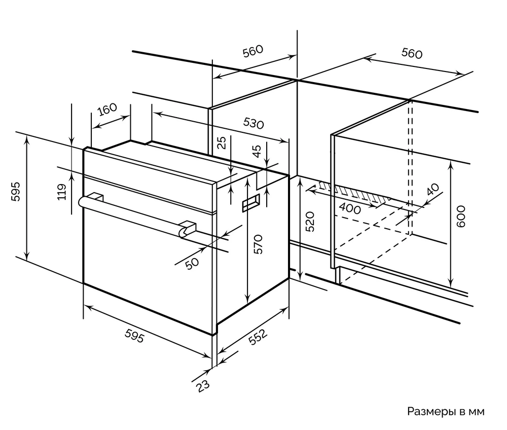 Ширина корпуса электроприбора. Особенно важно точно знать точную допустимую ширину для встраиваемой техники.
