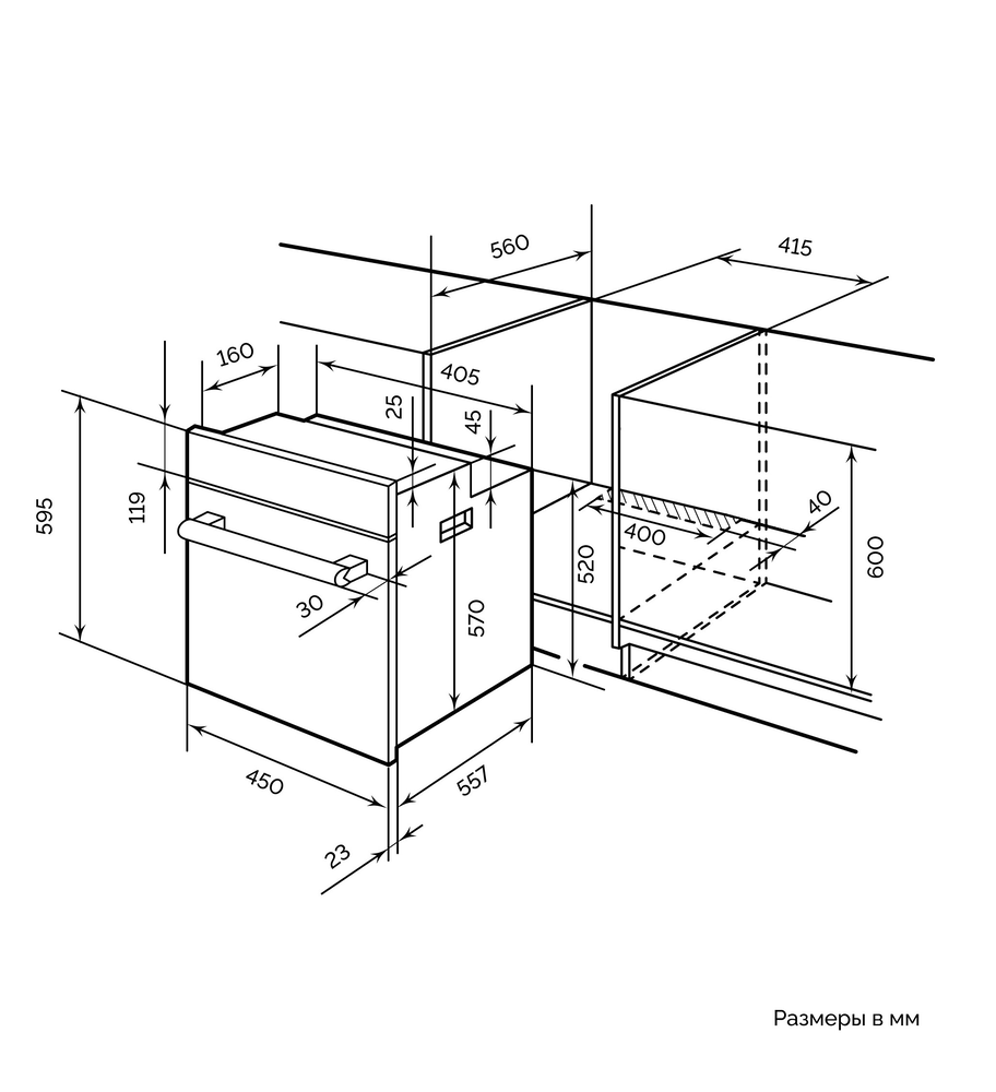 Ширина корпуса электроприбора. Особенно важно точно знать точную допустимую ширину для встраиваемой техники.