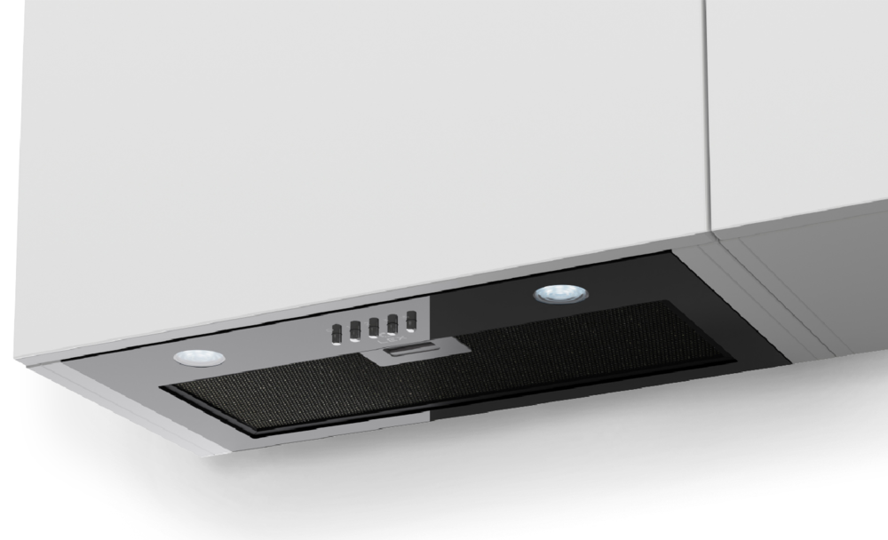 вытяжка встраиваемая в подвесной шкаф, 53 см, 700 м3/ч, черное стекло