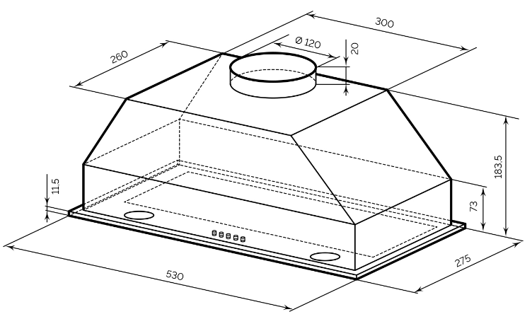 вытяжка встраиваемая в подвесной шкаф, 53 см, 700 м3/ч, белый антик