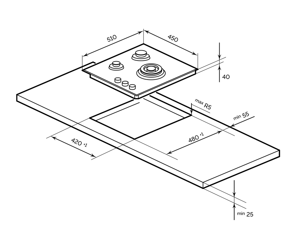 Расположение панели управления варочной поверхностью относительно конфорок. Если панель расположена сбоку, она будет справа.