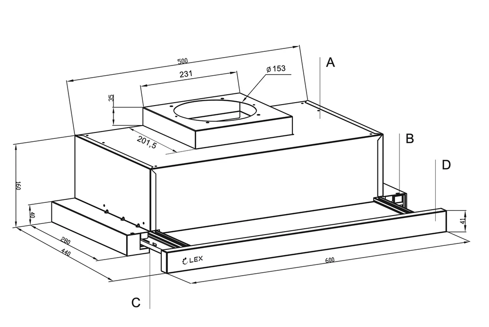 LEX Hermes 600 Black Вытяжка телескопическая