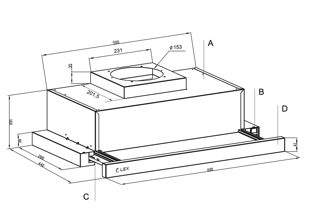 LEX Hermes 600 Inox Вытяжка телескопическая