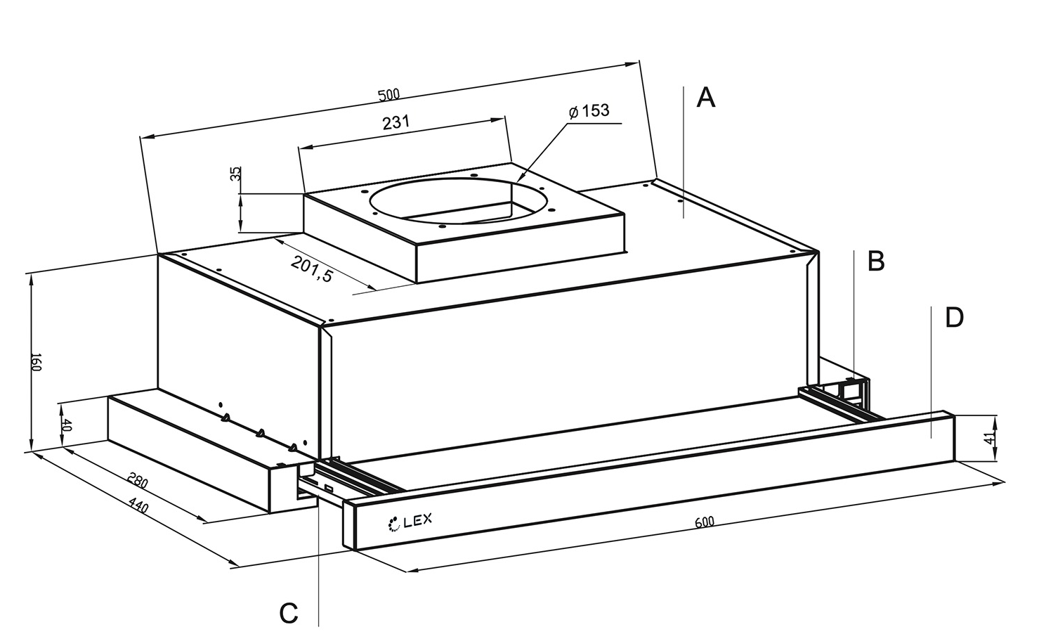 LEX Hermes G 600 Grey Вытяжка телескопическая