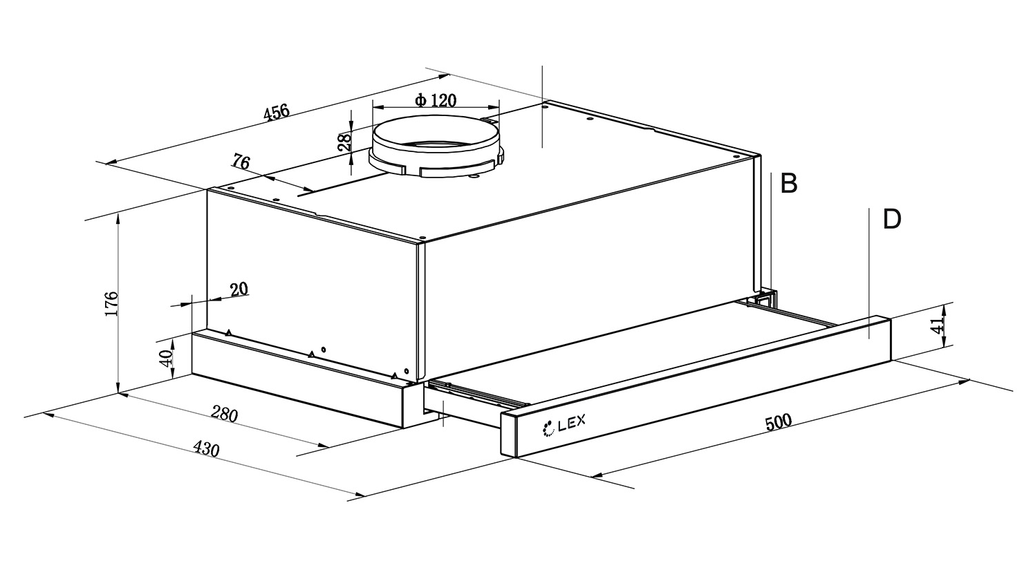 LEX HIDE 500 WHITE Вытяжка телескопическая